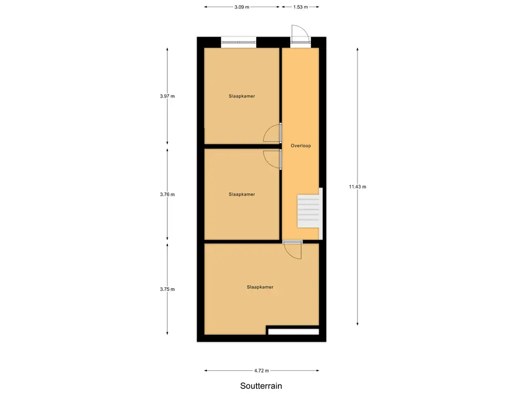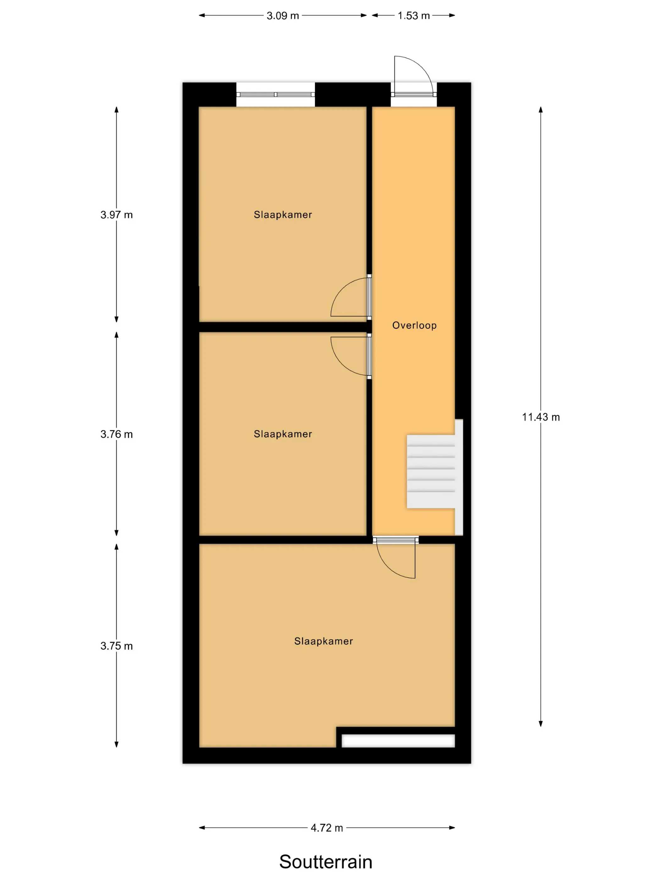 Het souterrain is via de hal bereikbaar en biedt ruimte aan drie royale kamers. Vanuit de hal in het souterrain heeft u direct toegang tot de riante achtertuin van circa 86 m², wat een unieke toevoeging is voor een appartement.