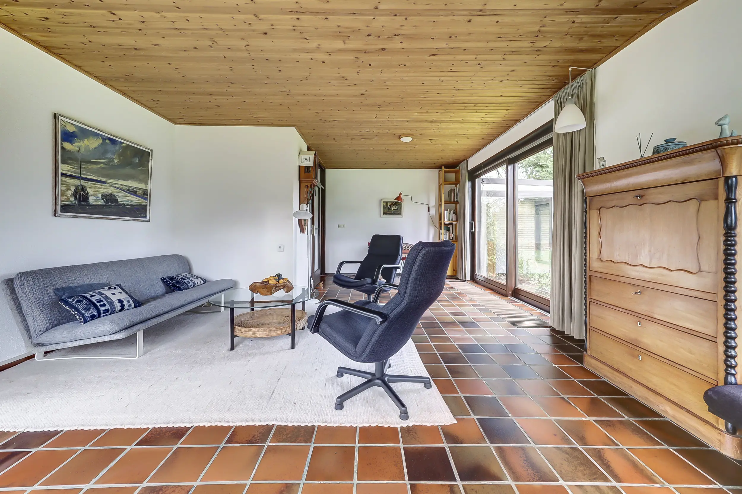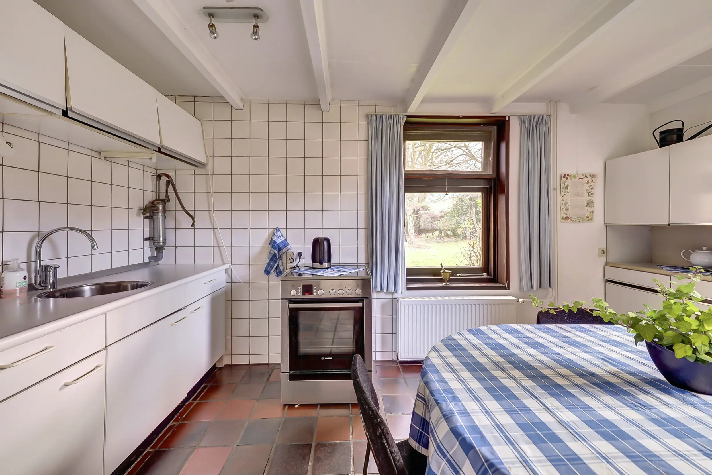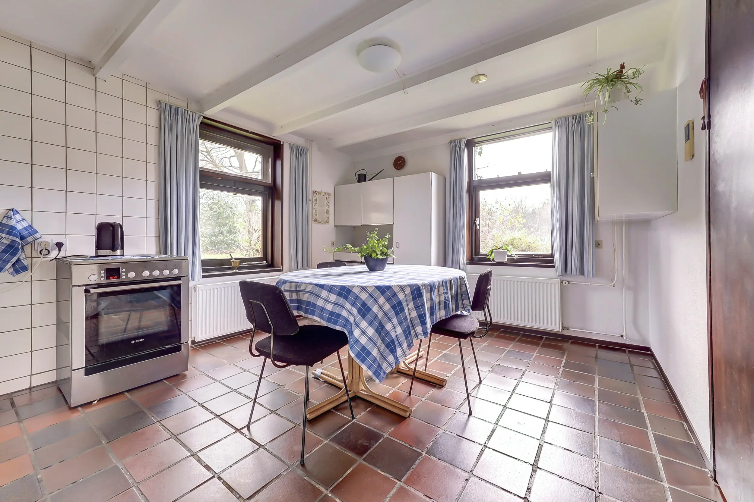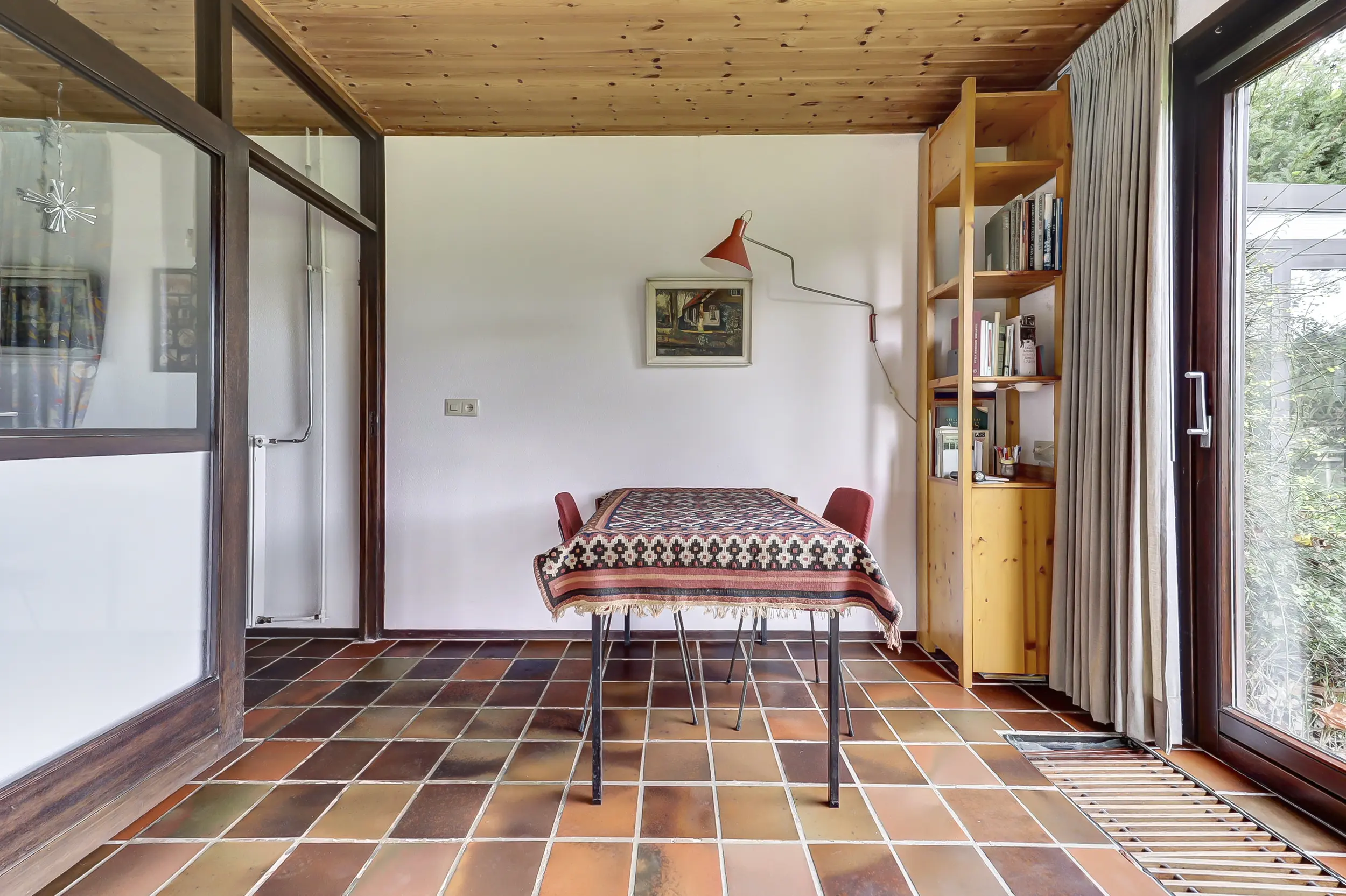 Daarnaast beschikt de woning over een extra kamer met een eigen ingang. Perfect als werkkamer of hobbyruimte. Aangrenzend vind je de bijkeuken met een vernieuwde meterkast (2025), een uitstortgootsteen, de CV-ketel (Nefit 2022) en wasruimte en toegang tot de overkapping bij de voordeur. Naast de bijkeuken is de serre die uitkijkt over de tuin.