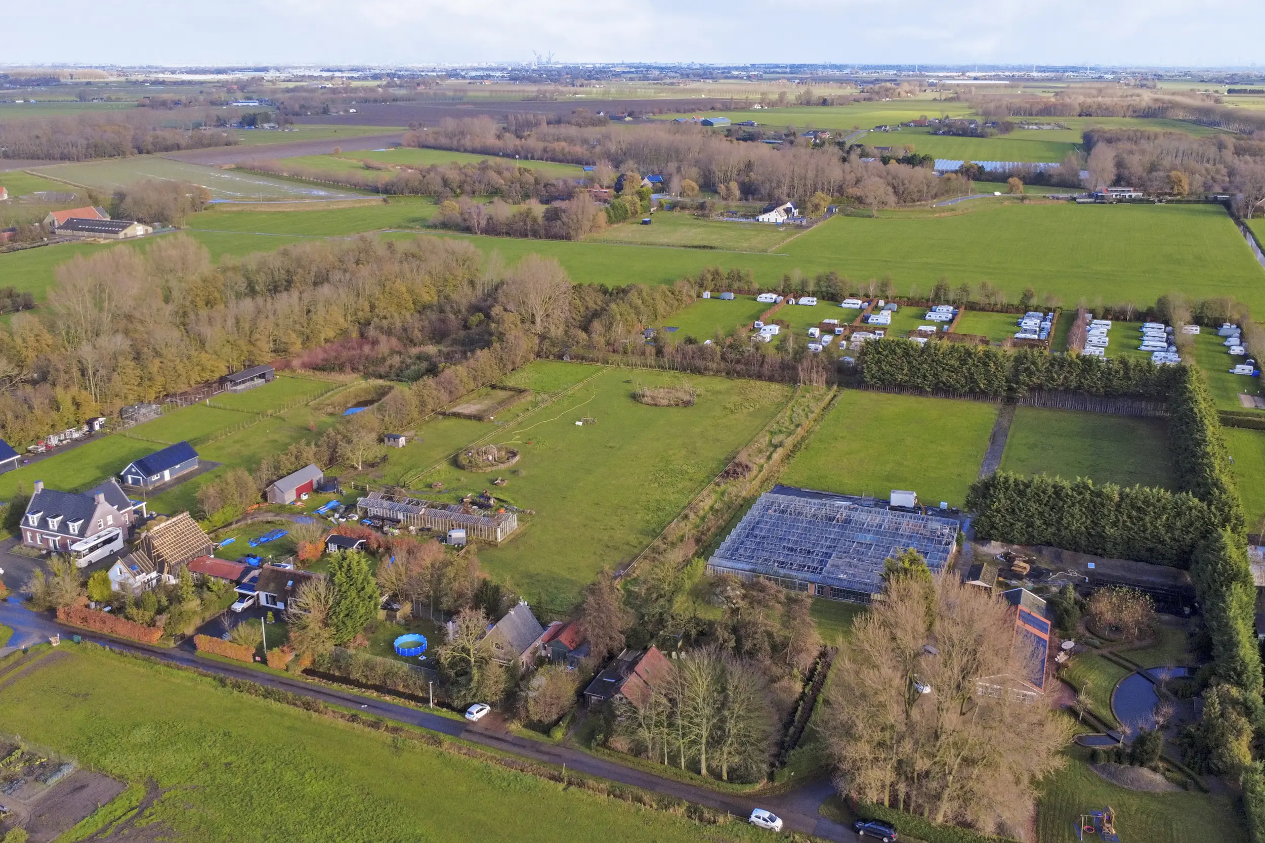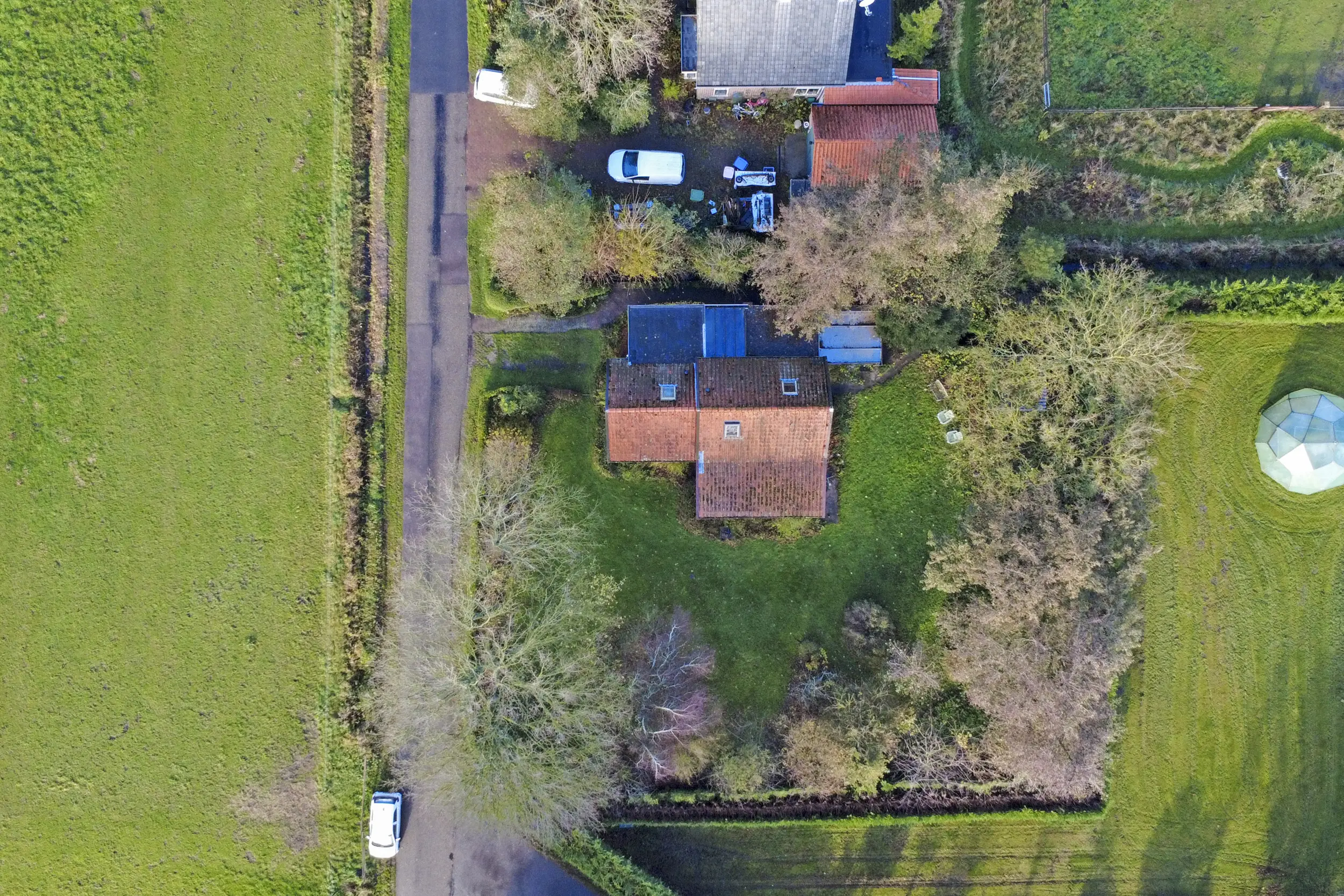 aan rustige weg, vrij uitzicht, buiten bebouwde kom, in bosrijke omgeving, landelijk gelegen