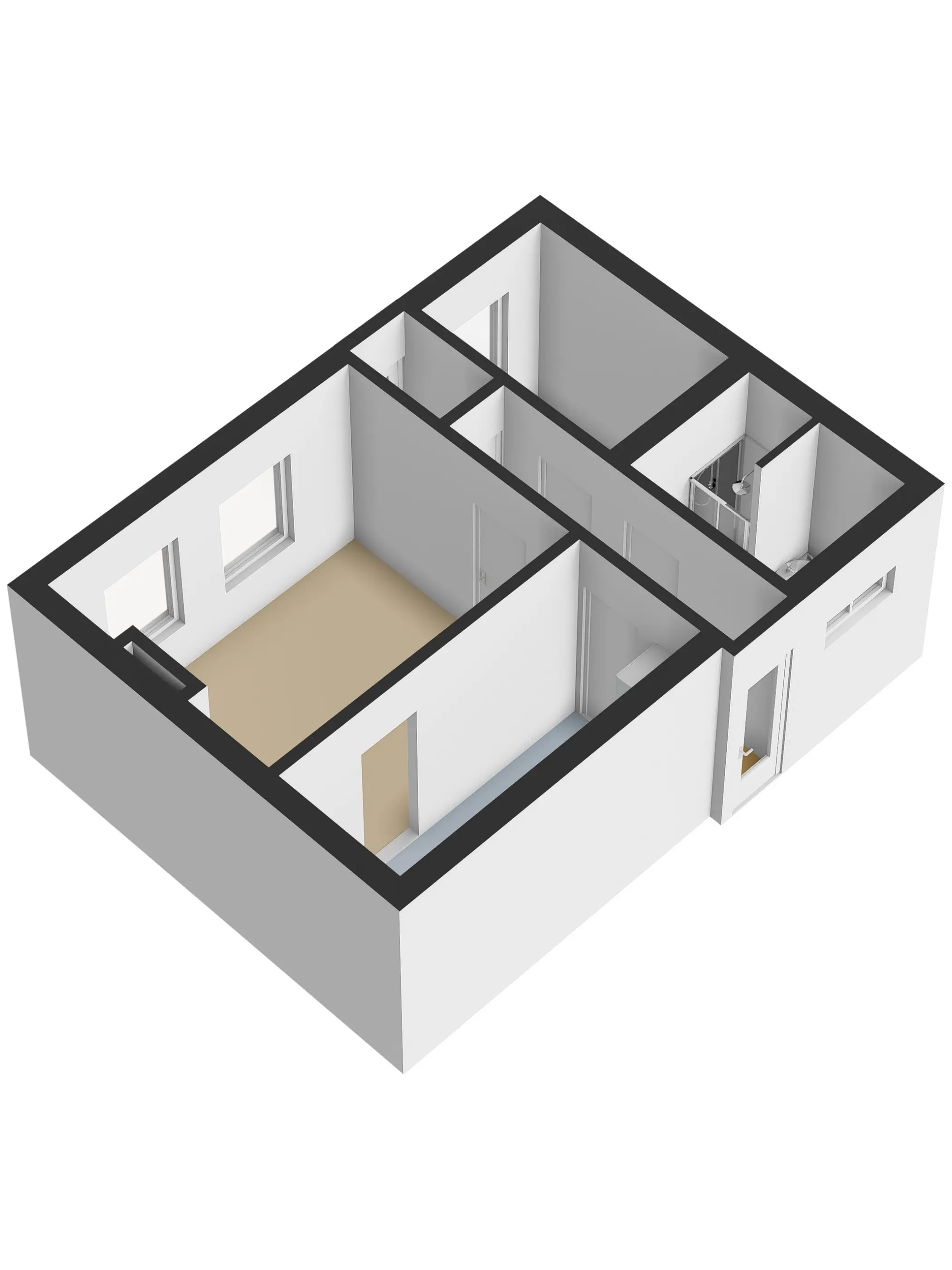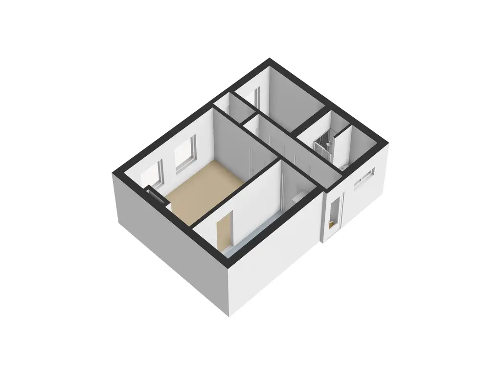 Voorzijde voorzien van houten kozijnen met enkele beglazing.