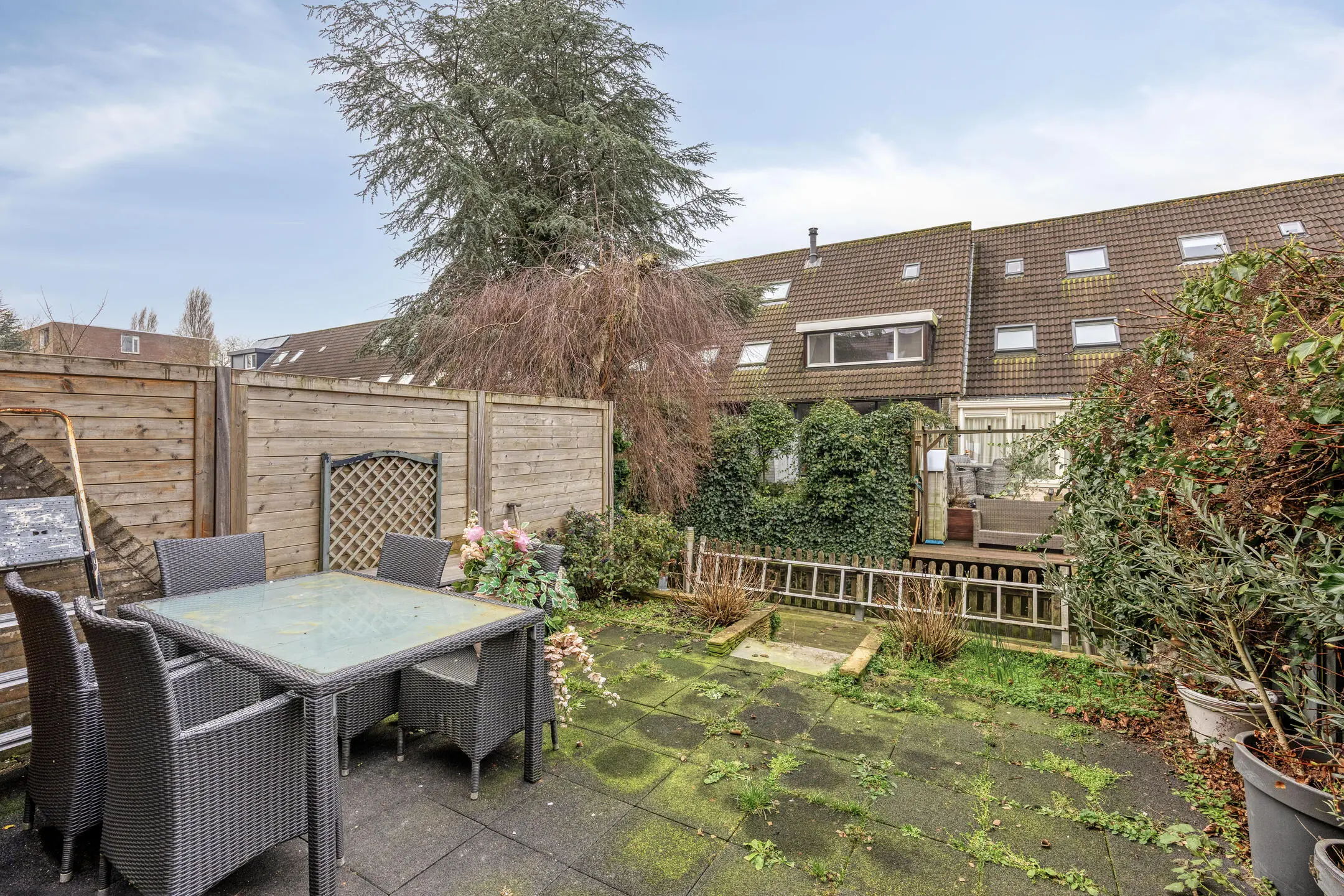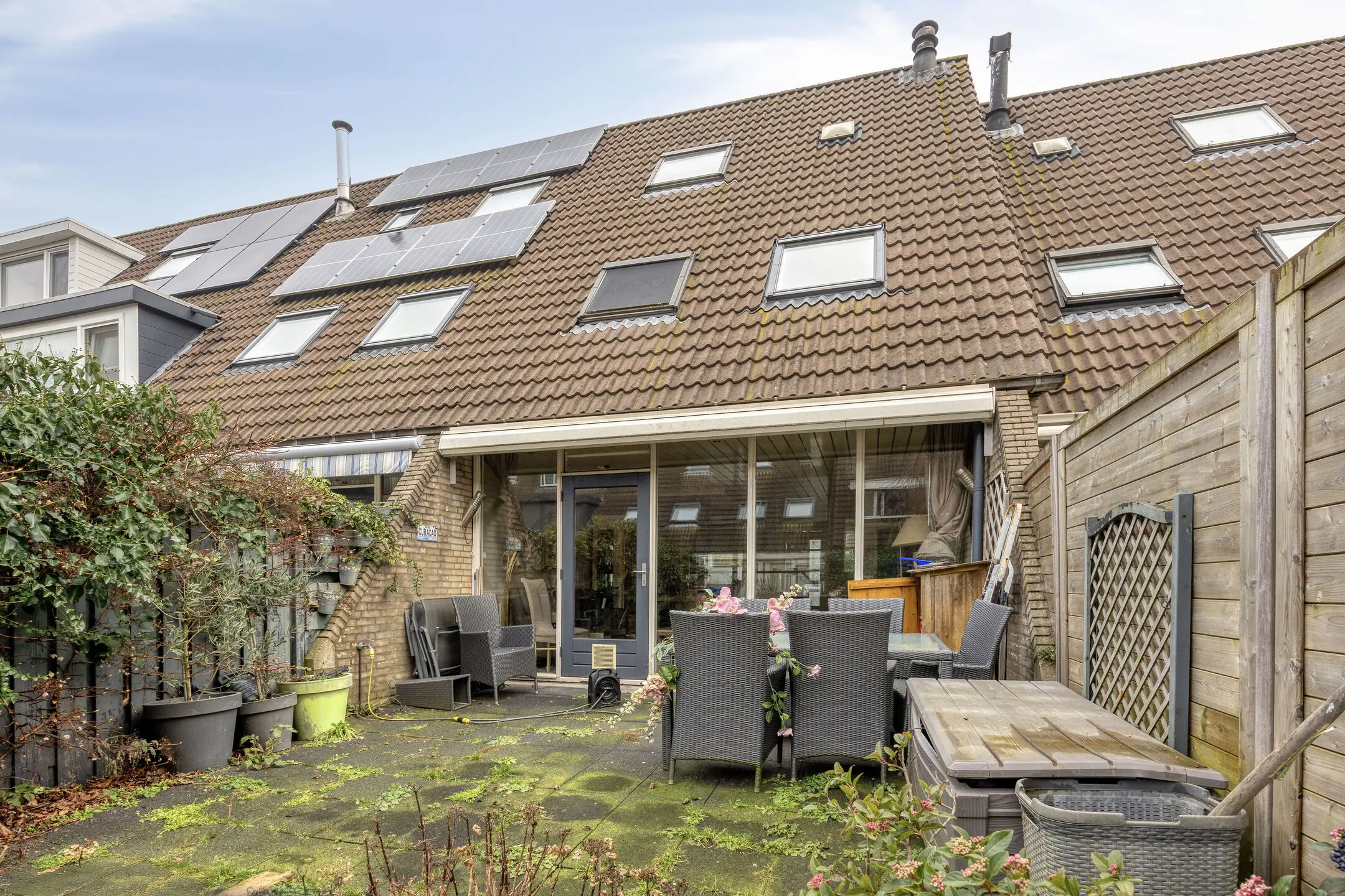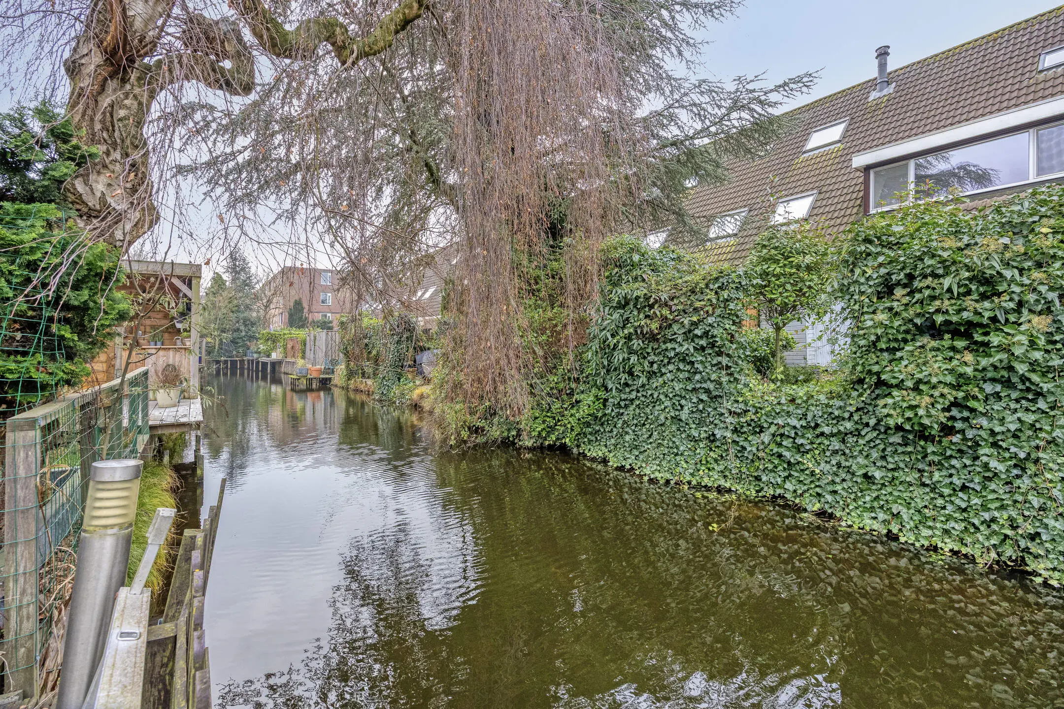 De woning ligt aan een autoluwe straat, met parkeergelegenheid direct voor de deur. Aan de achterzijde grenst de tuin aan water, wat een vrij en rustig woongevoel geeft.