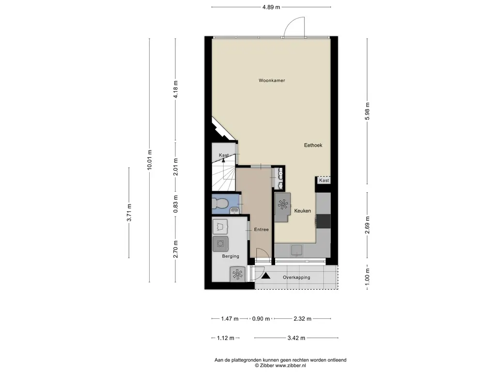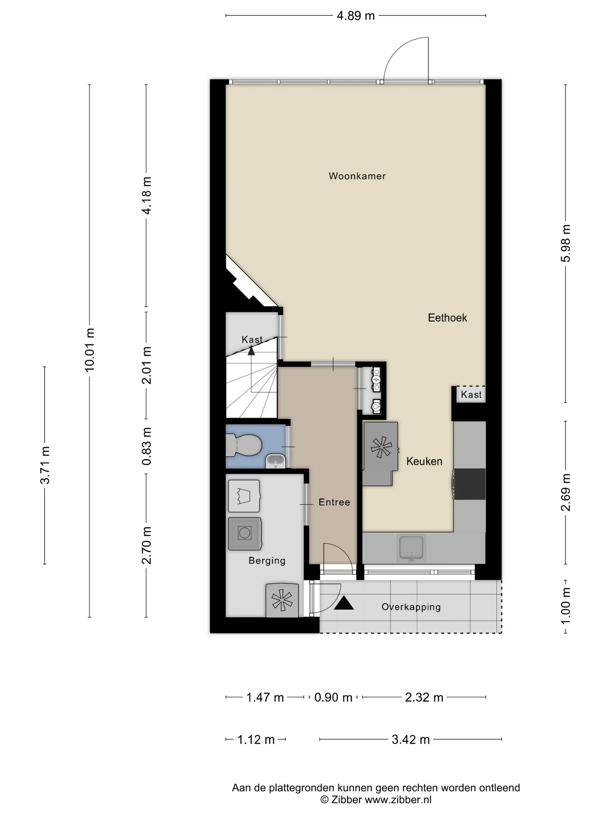 Op de begane grond vindt u de entree met hal, toegang tot de berging (ook bereikbaar vanaf de straat) en het toilet. De ruime woonkamer heeft veel lichtinval dankzij een brede schuifpui naar de tuin. De keuken bevindt zich aan de voorzijde van de woning met uitzicht op de autoluwe straat.