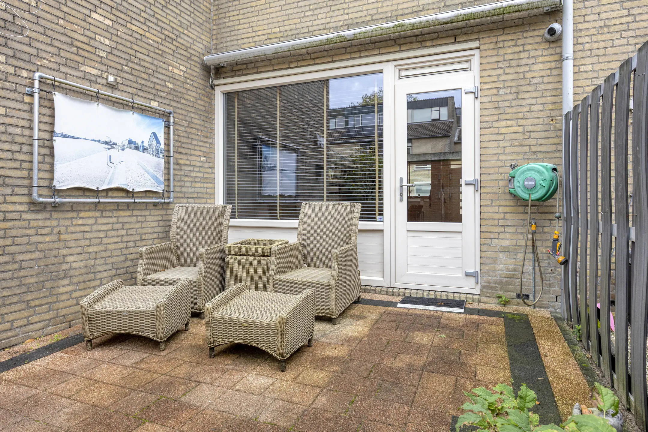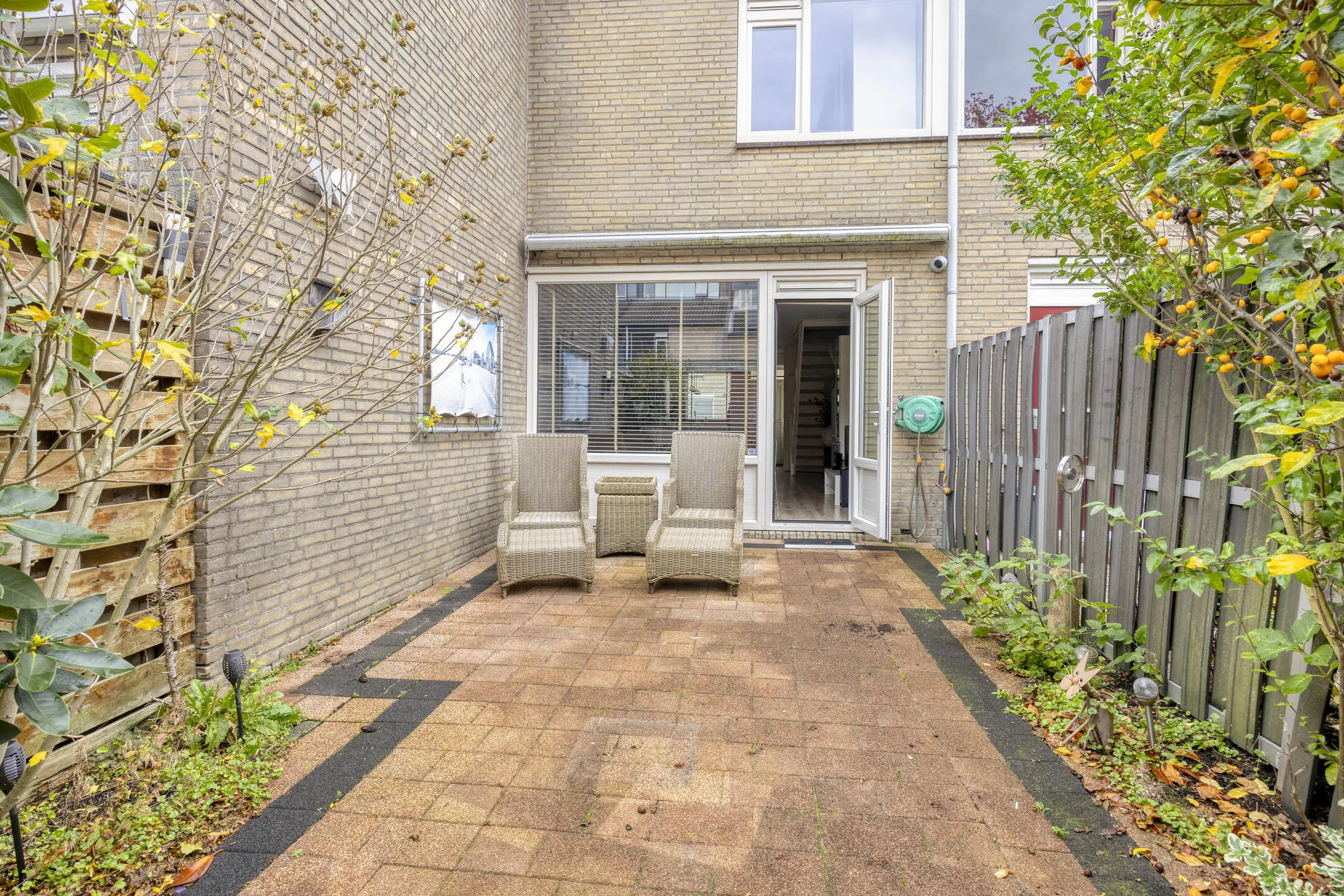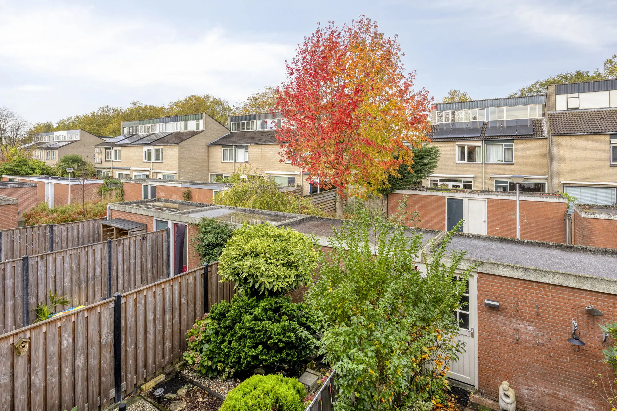 Onderhoudsvriendelijke op het noordwesten gelegen achtertuin met betegeling, vaste beplanting en buitenkraan. Er is een stenen berging aanwezig met achterom en elektra. Het zonnescherm met elektrische bediening houdt de zon uit de woonkamer.