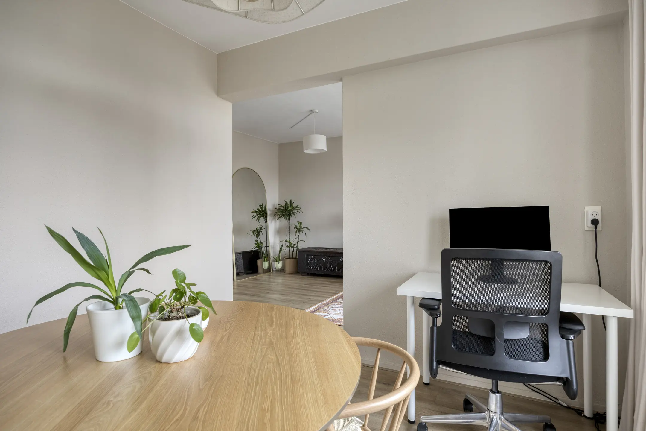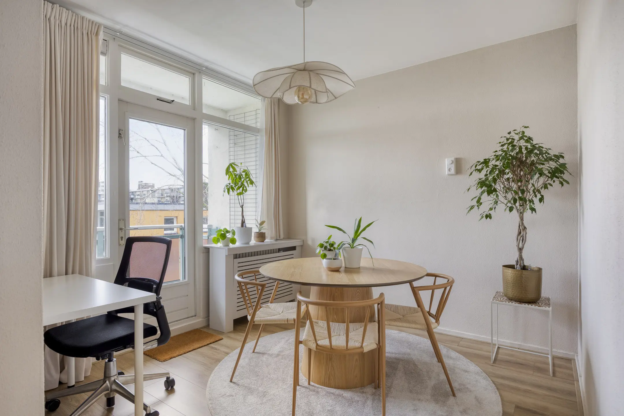 De voormalige derde slaapkamer is momenteel ingericht als eet-/werkkamer. Deze ruimte staat in verbinding met de woonkamer en is multifunctioneel te gebruiken. Vanuit deze kamer heb je toegang tot het balkon op het westen, waar je heerlijk kunt genieten van de middag- en avondzon.