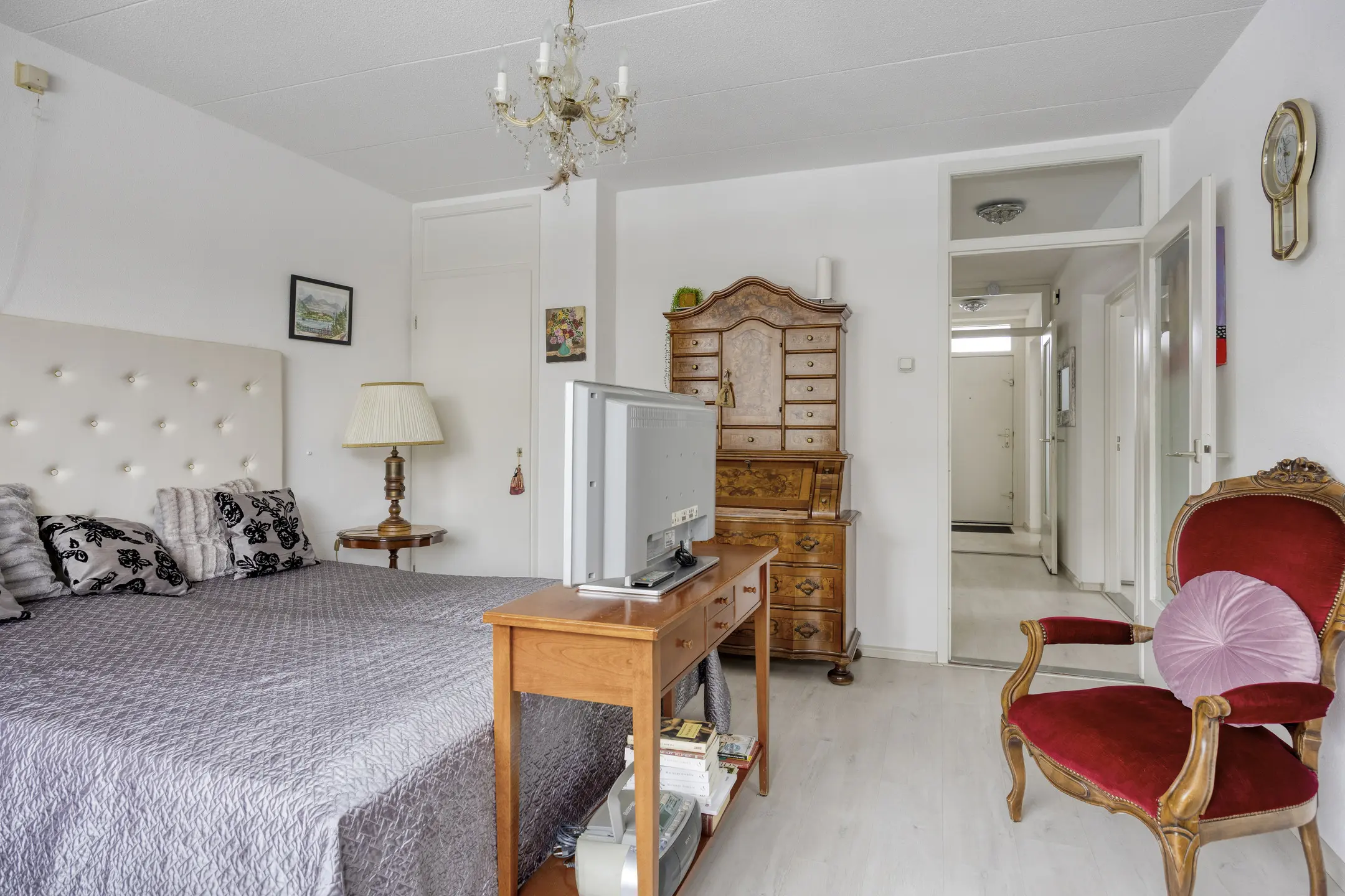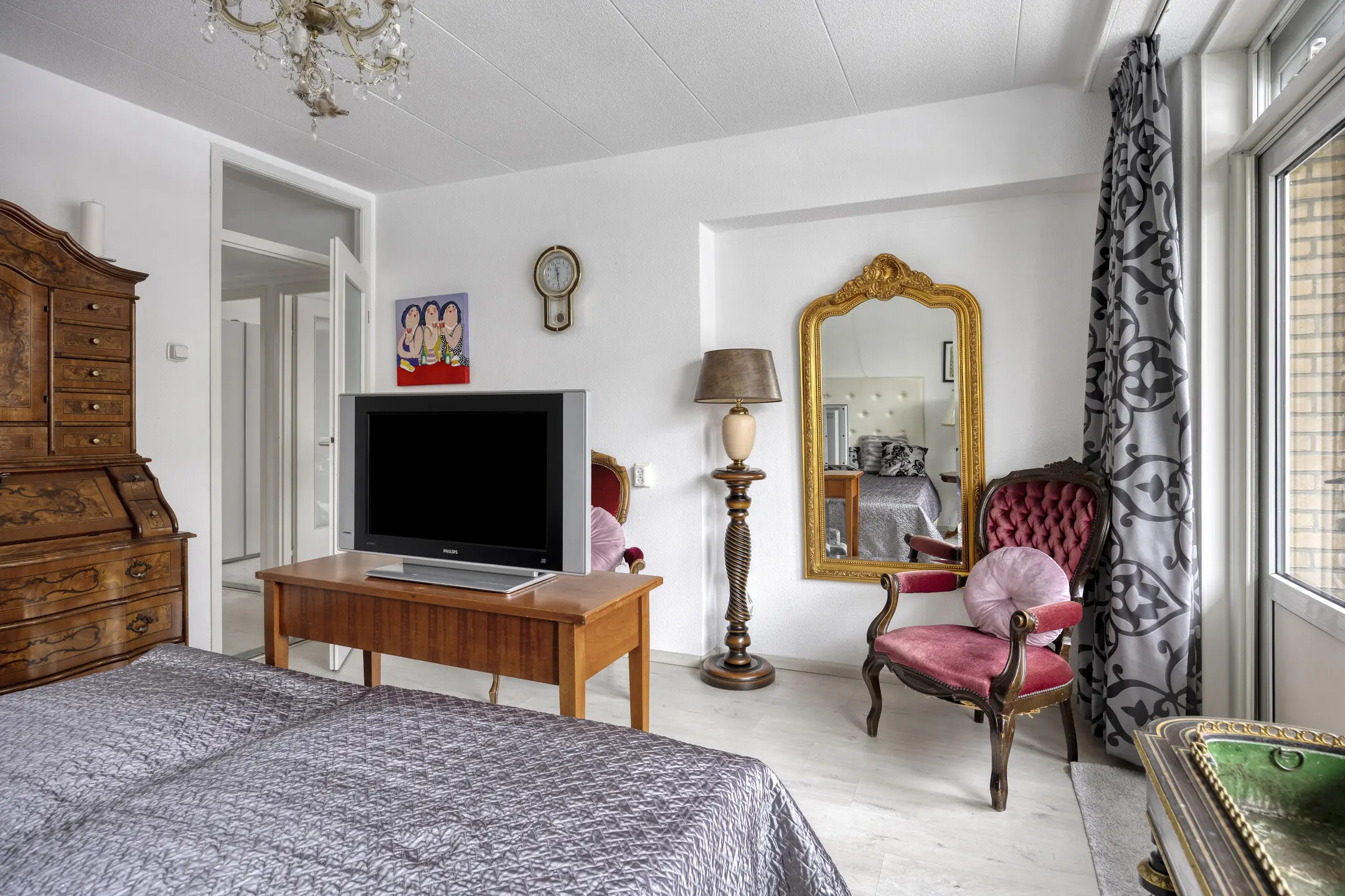 De grootste slaapkamer bevindt zich aan de achterzijde van het appartement en biedt toegang tot het balkon, waar je heerlijk kunt ontspannen. De woonkamer is ruim en licht, gelegen naast de grootste slaapkamer, wat zorgt voor een prettige ruimte om tot rust te komen.