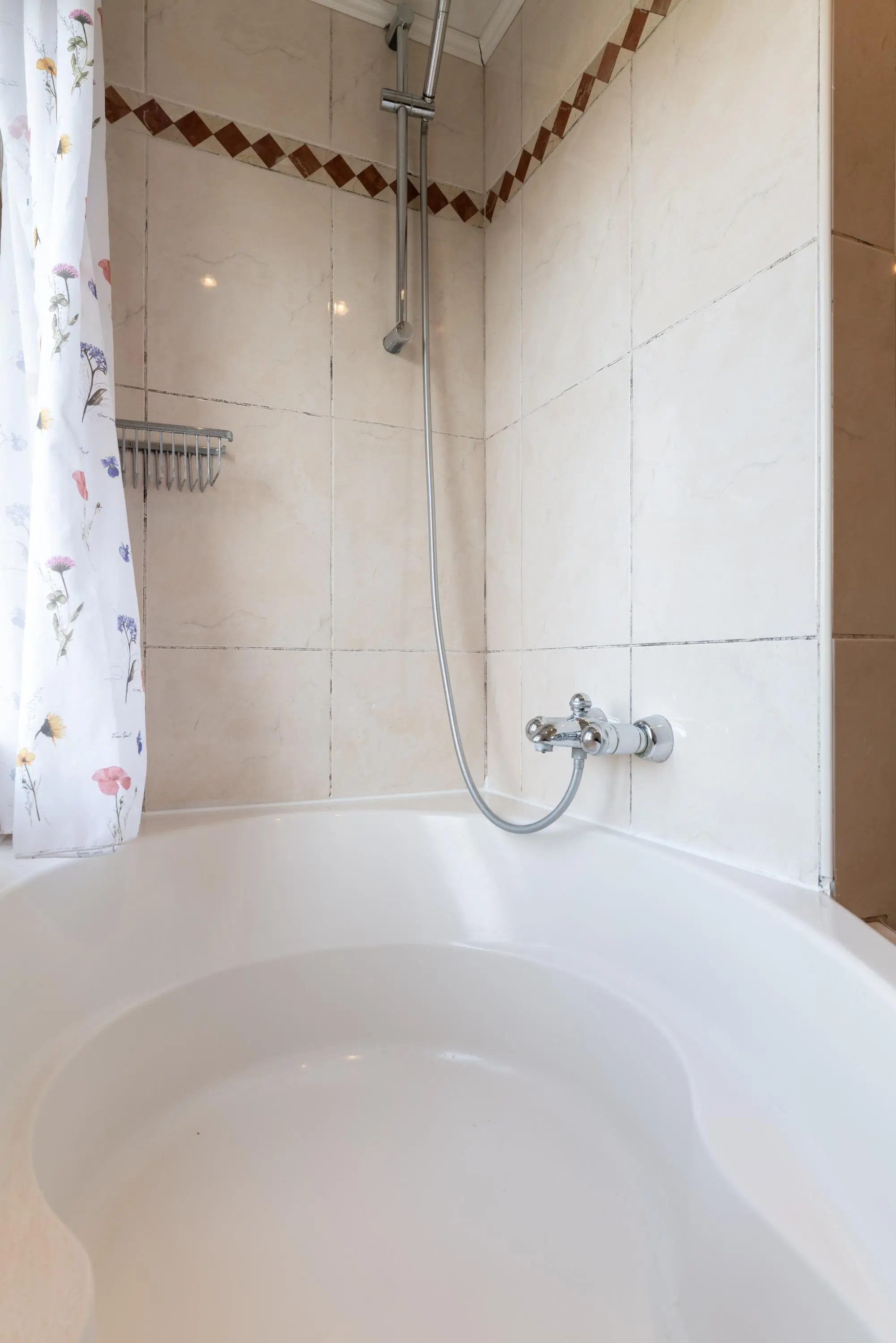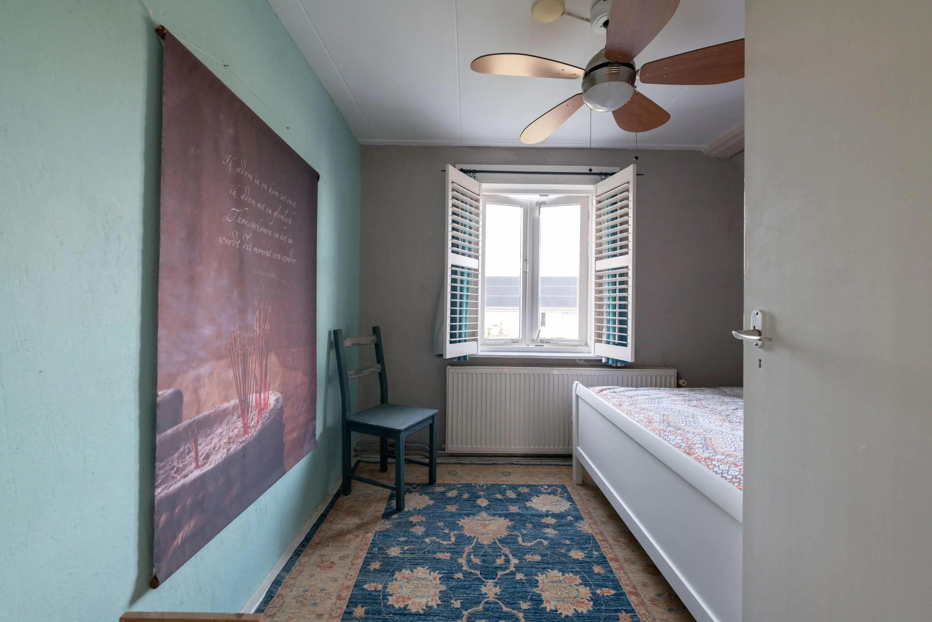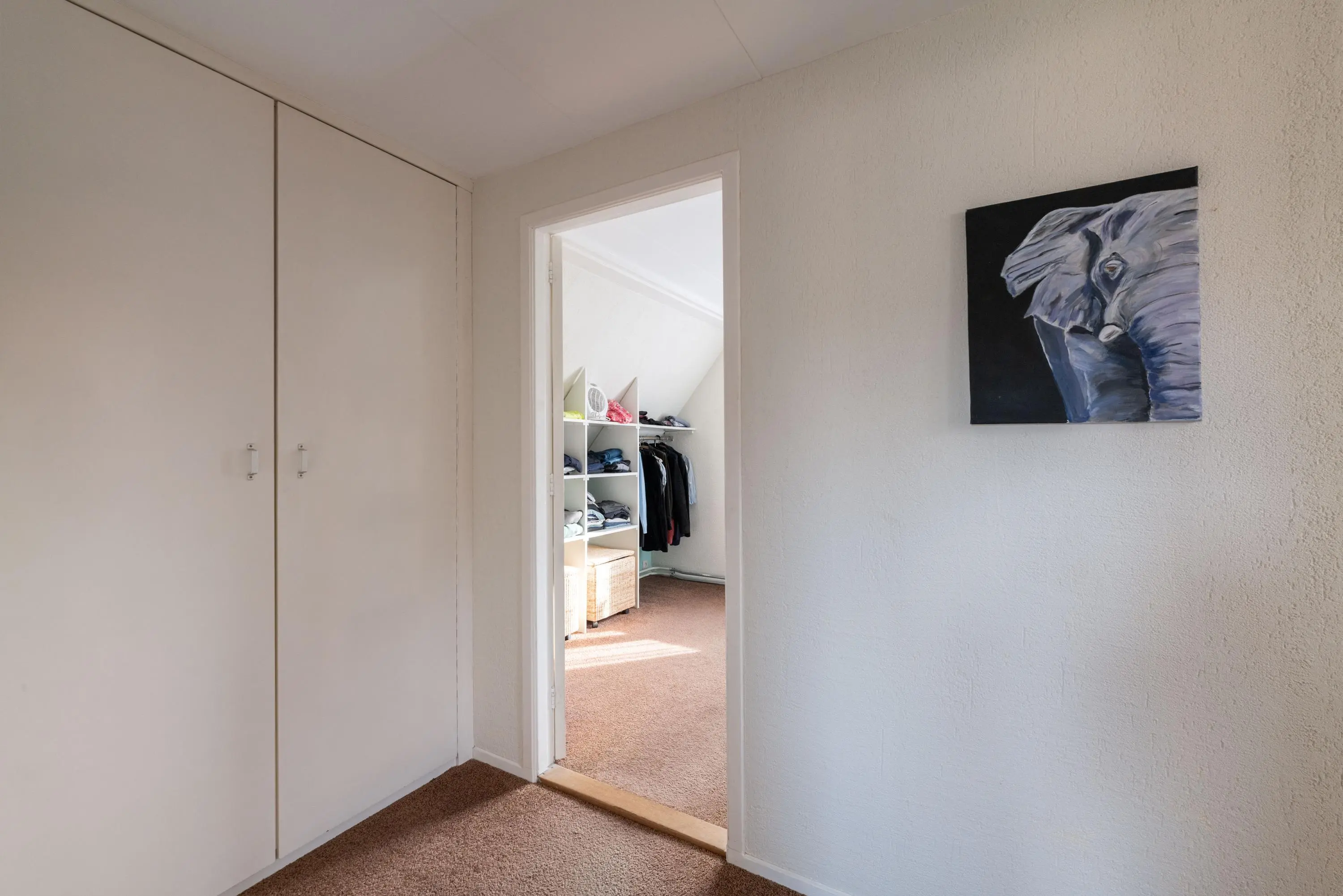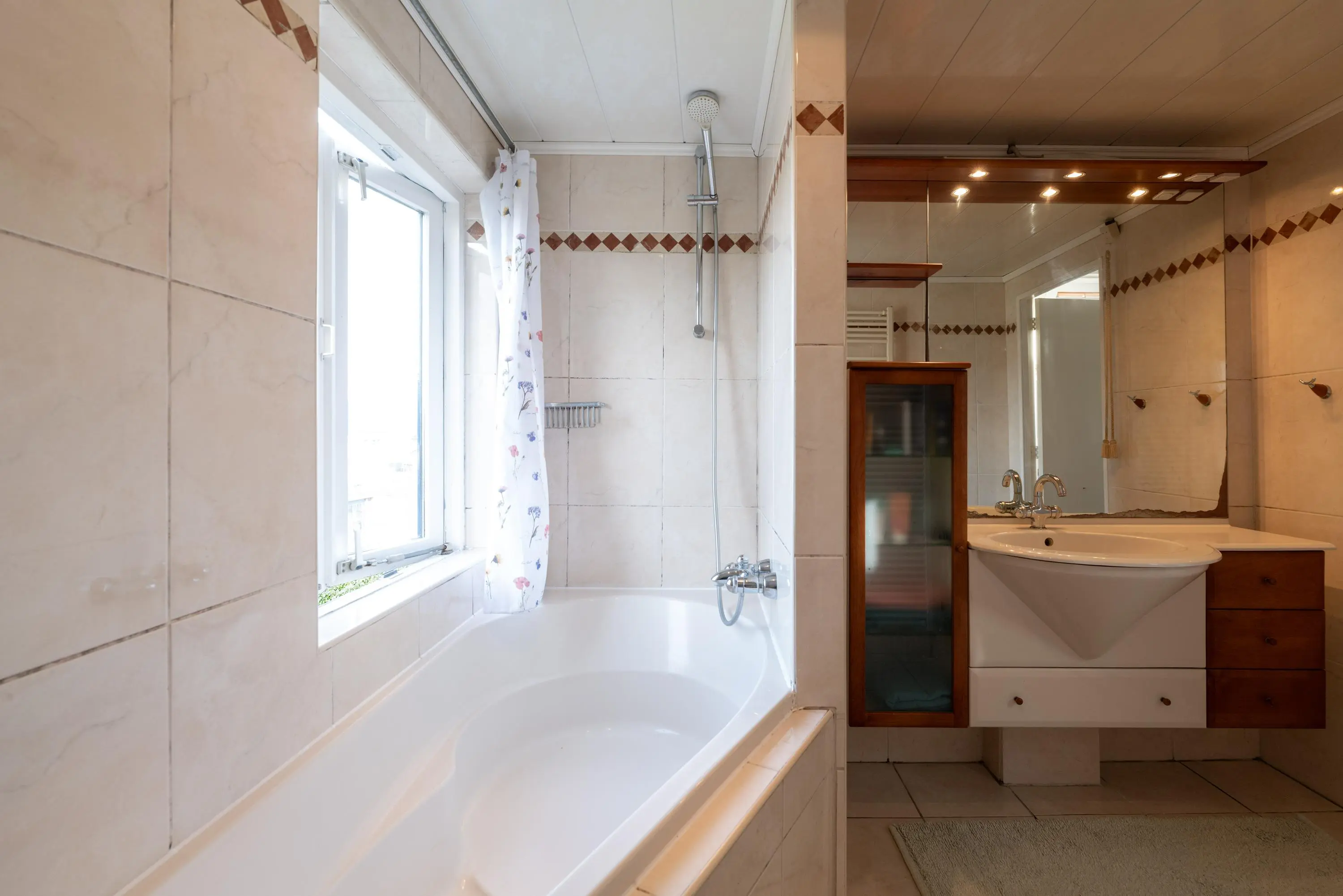 De overloop geeft toegang tot de 3 slaapkamers en de badkamer op deze woonlaag. Op de overloop is ook een kastruimte aanwezig. Aan de voorzijde 2 slaapkamers waarvan 1 is ingericht als kastenkamer. De geheel betegelde badkamer heeft een ligbad met douche, 2e toilet en een wastafelmeubel met designradiator. Het plafond is voorzien van inbouwverlichting.